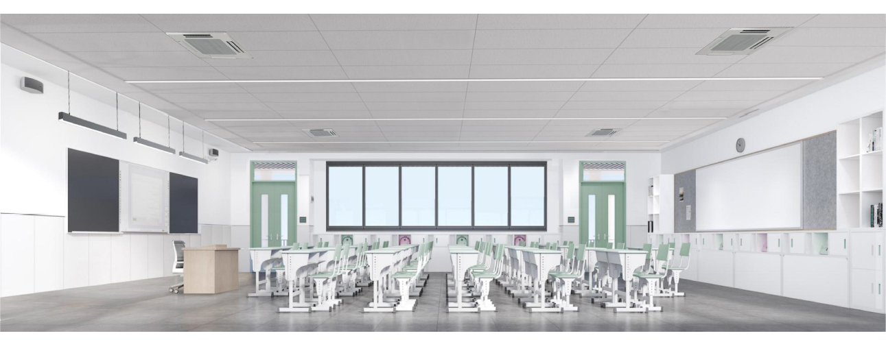 · Design: Primary classrooms feature bright, child-friendly designs with neutral tones and soft green accents, fostering a calm yet engaging atmosphere. All panels are scratch-resistant, ideal for high-traffic learning spaces.