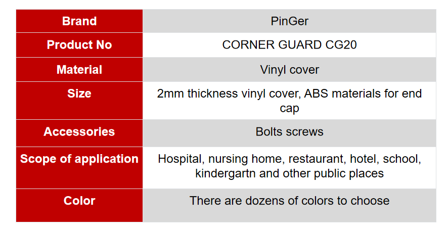 ●Corner guards assembled by 2mm Vinyl Cover,2.0mm Aluminum Retainer or 2.0mmVinyl Retainer.ABS end cap.