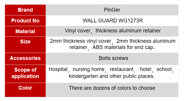 Pinger wall guads is assembled by the following parts:2mm thickness vinyl cover,2mm thickness aluminum retainer,