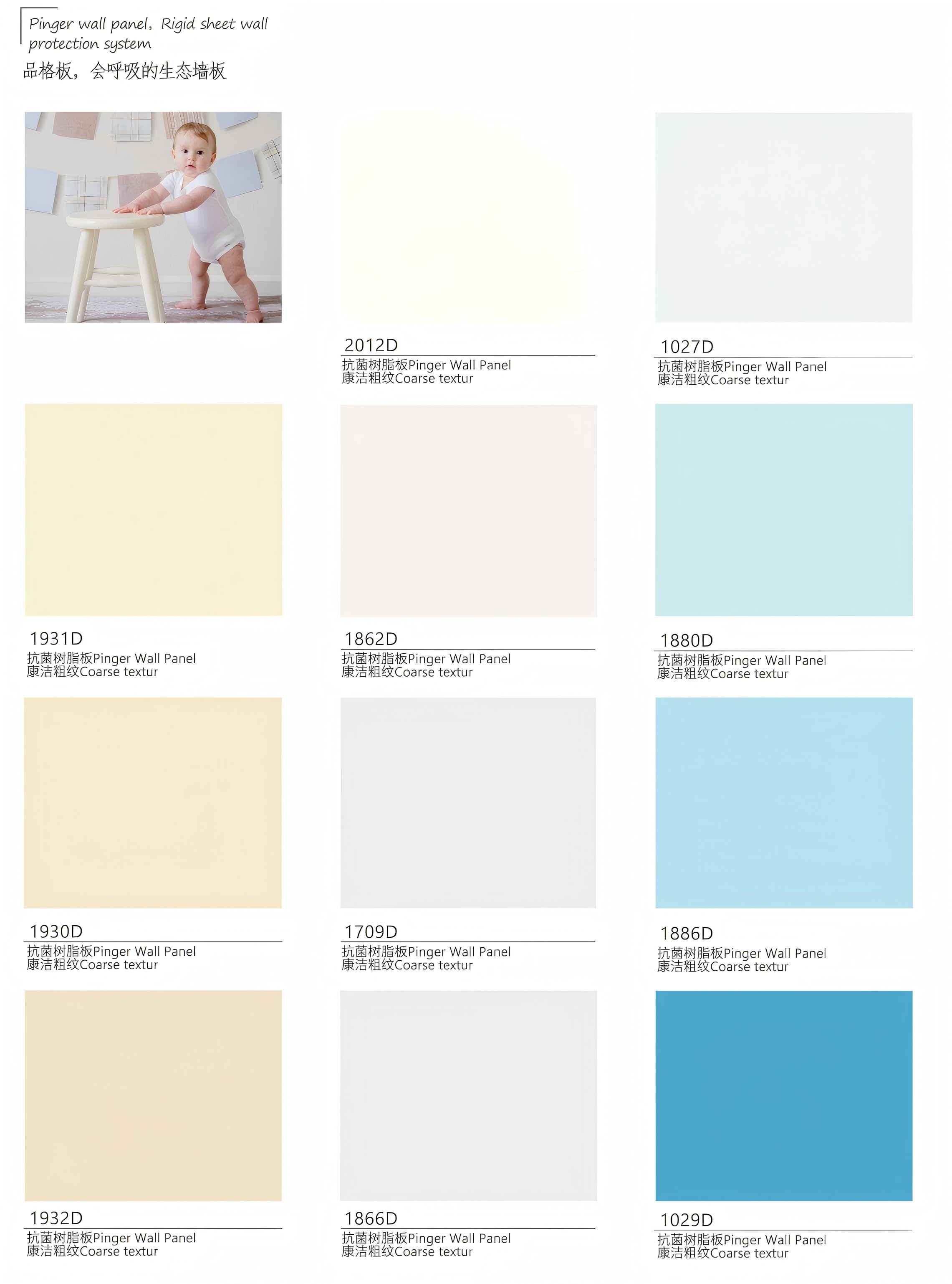 ●Pinger wall panel is a new type of green environmental protection building materials,with anti-collision wear-resisting,fire retardant,mouldproof moistureproof and easy to clean,antibacterial ,rich colors,dimension stability,etc.