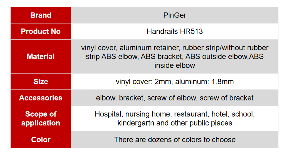 The hand-held part of handrail is in accordance with the requirments of human mechanics,and the hand-held areas has a comfortable and reasonable arc. handrails,wall guards,and corner guards provide maximum protection and damage to walls.
