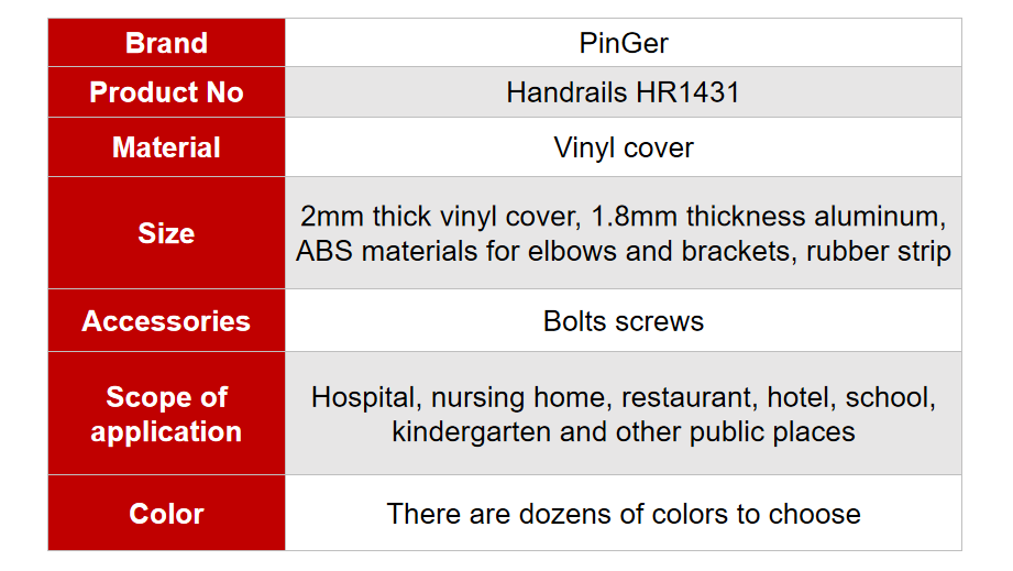 ●There're many colors for the Handrails as reference, including Wood colors Which can match with PinGer Wall Guards, Corner Guards & Pinger wall panel to create a perfect space.