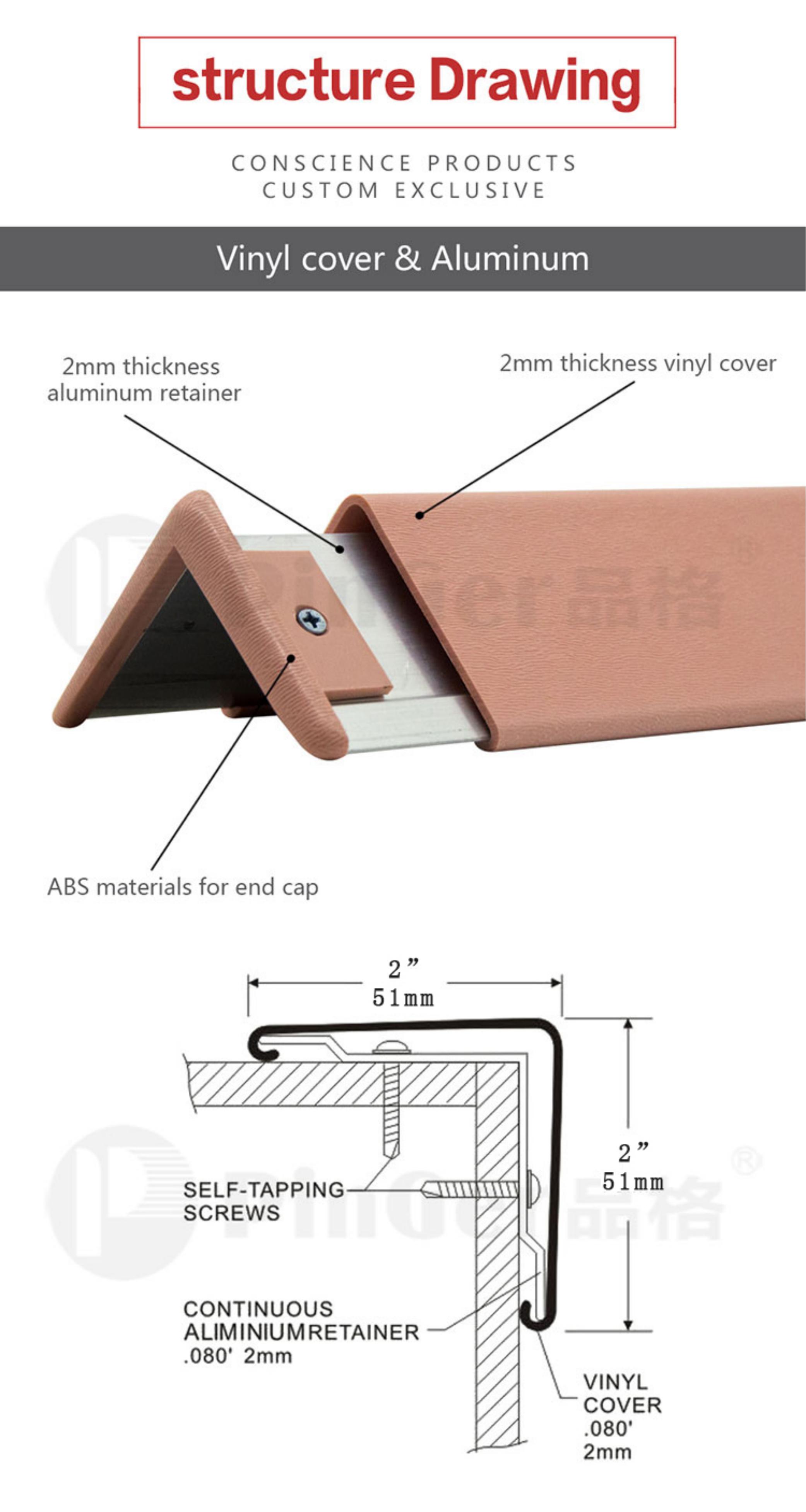 ●Corner guards assembled by 2mm Vinyl Cover,2.0mm Aluminum Retainer or 2.0mmVinyl Retainer.ABS end cap.