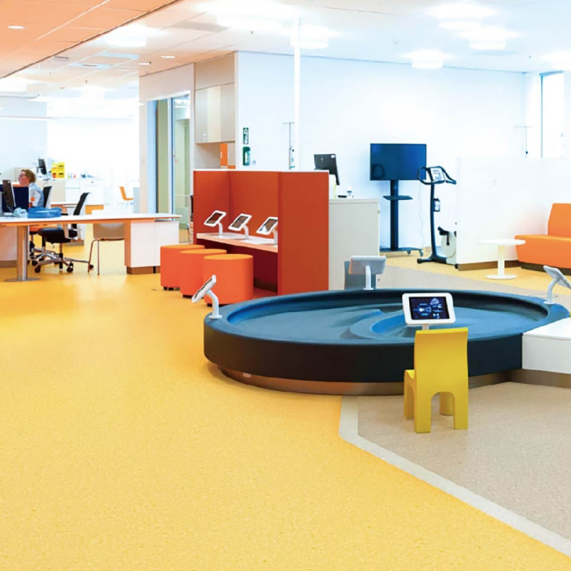 | Suitable for high load environment floor, quiet harmonious tone grain pattern design. Suitable for high-load environments Good footstep absorption (6-8dB) R9- Anti-slip performance Pvc-free, phthalate plasticizers and halogens thanks to high flame retardant properties for improved safety Seamless installation No coating required Applicable places : Airport, high-speed railway, subway, ship,hospital, school, shopping mall, train station |