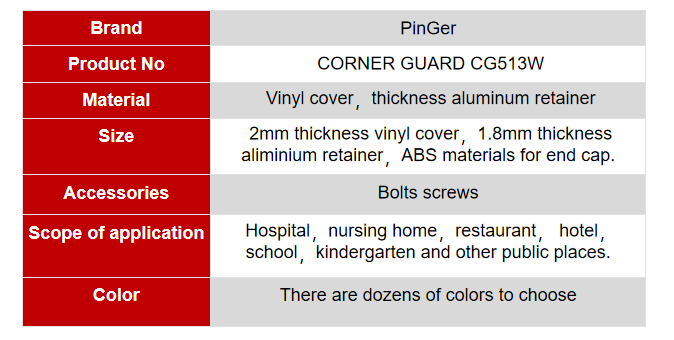 ●Corner guards assembled by 2mm Vinyl Cover,2.0mm Aluminum Retainer or 2.0mmVinyl Retainer.ABS end cap.