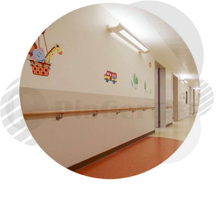 ●Pinger Handrails installed on the wall which is about80cm~ 90cm fro m floor.Han drails can protect the walls wellfromimpact, at the mean while it can supportthepasserby also.