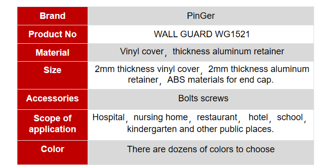 Pinger wall guads is assembled by the following parts:2mm thickness vinyl cover,2mm thickness aluminum retainer,