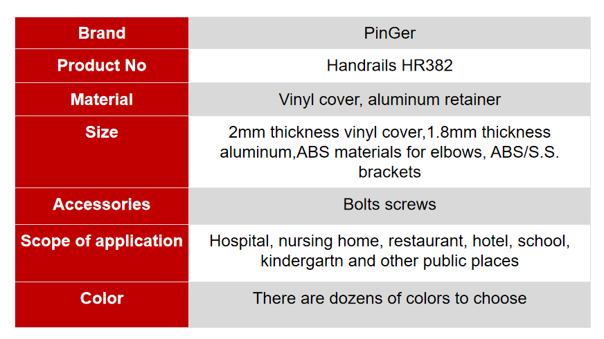 ●There're many colors for the handral as refere nice, including Wood colors which can match with pinGer Handrais,Corner Guards& wallpanels to create a perfect space.