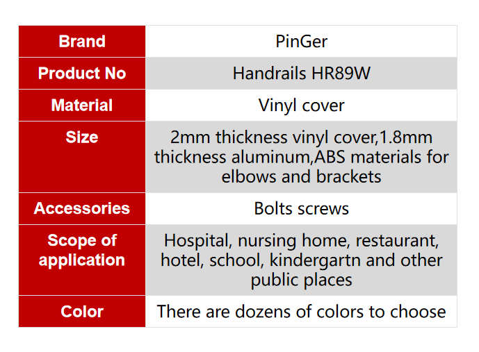 The hand-held part of handrail is in accordance with the requirments of human mechanics,and the hand-held areas has a comfortable and reasonable arc. handrails,wall guards,and corner guards provide maximum protection and damage to walls.