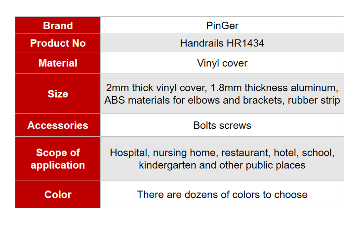 ●There're many colors for the Handrails as reference, including Wood colors Which can match with PinGer Wall Guards, Corner Guards & Pinger wall panel to create a perfect space.
