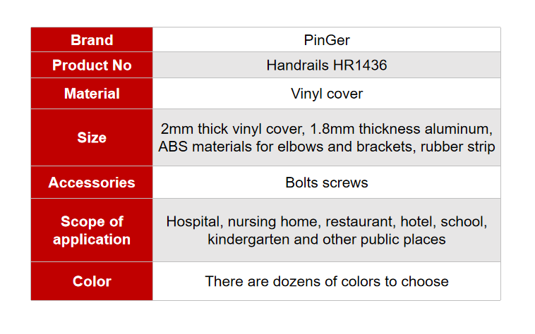 ●There're many colors for the Handrails as reference, including Wood colors Which can match with PinGer Wall Guards, Corner Guards & Pinger wall panel to create a perfect space.