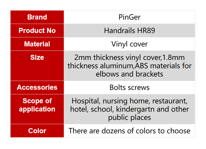 The hand-held part of handrail is in accordance with the requirments of human mechanics,and the hand-held areas has a comfortable and reasonable arc. handrails,wall guards,and corner guards provide maximum protection and damage to walls.