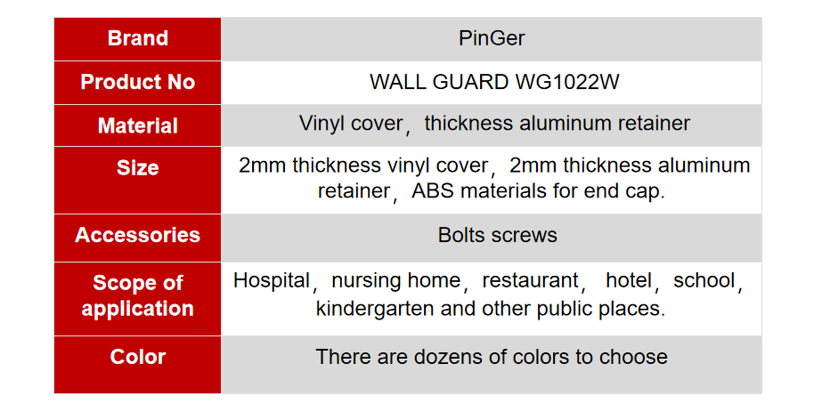 Pinger wall guads is assembled by the following parts:2mm thickness vinyl cover,2mm thickness aluminum retainer,